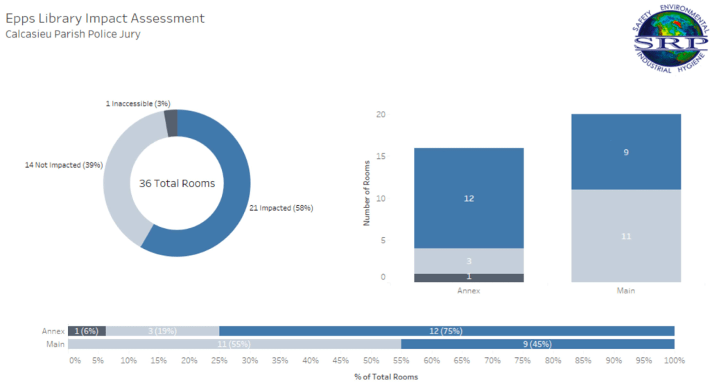 Impact assessments provided by Calcasieu Parish Police Jury show that the hurricanes affected nine out of 20 rooms at Epps Memorial Library and 12 out of 16 rooms in the Epps Annex.